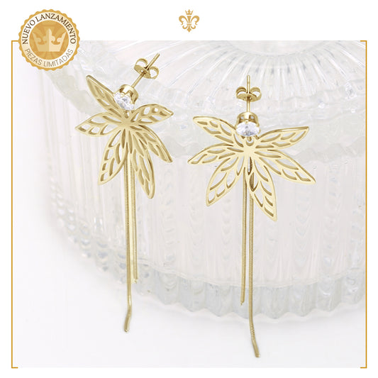 Artes Largos De Cadena Con Hojas acabado Espejo En Oro Laminado 14k