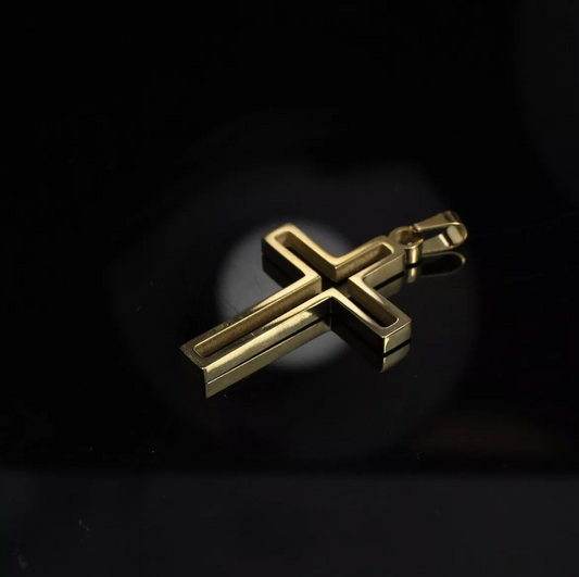 dije elegante de cruz hueca estilo unisex en oro laminado
