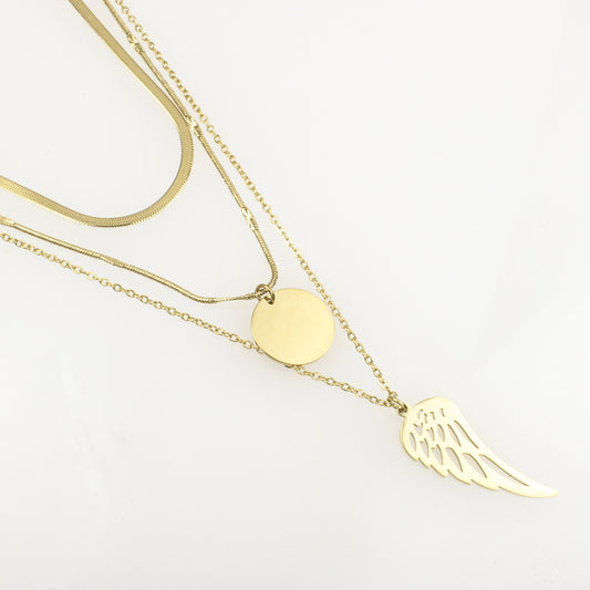 Cadena Gargantilla Collares Multiples Con Dije De Ala De Ángel En Acero Inoxidable