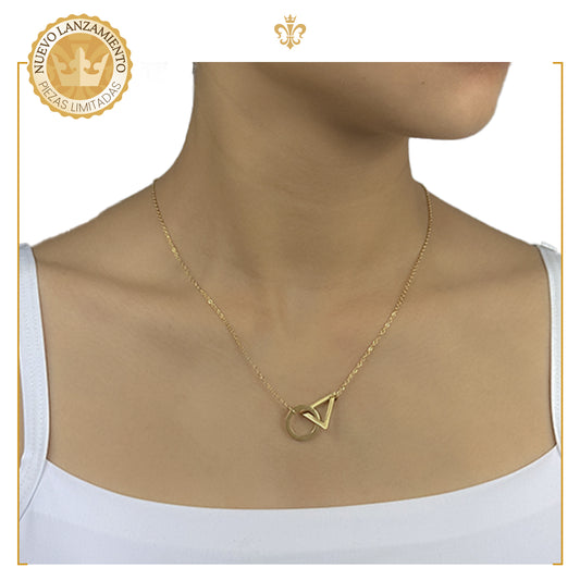 Collar Delgado Con Dijes asimetricos Enlazados Espejo De Oro Laminado 14k