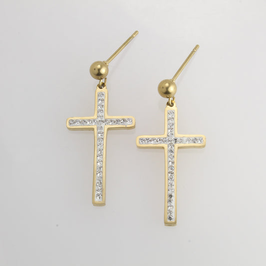 Aretes De Cruz Colgante En Acero Inoxidable Con Cristales Para Dama