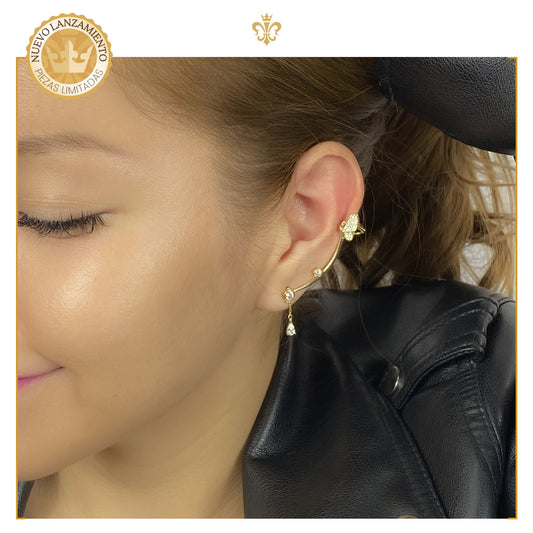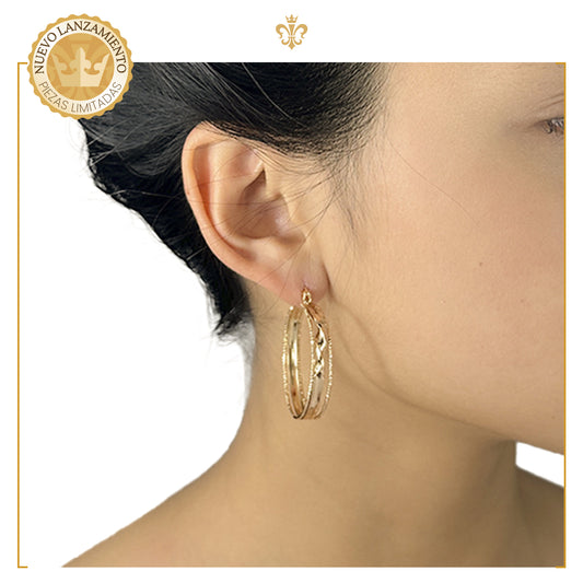 aretes Arracadas Doradas con Detalles Brillantes en oro laminado 18k