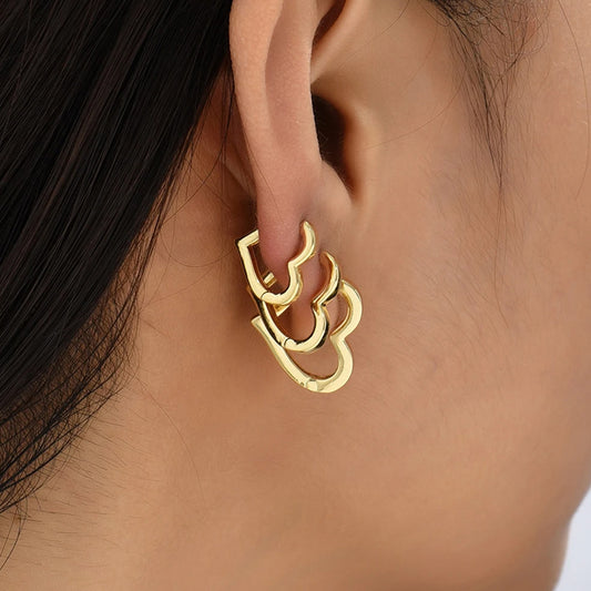 aretes arracadas con diseño de corazon grueso en acero inoxidable