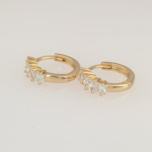 Aretes arracada pequeña con cristales para mujer de moda en oro laminado 14k