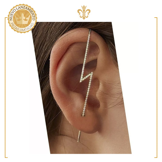 arete para mujer de gancho diagonal estilo rayo con cristales en oro laminado
