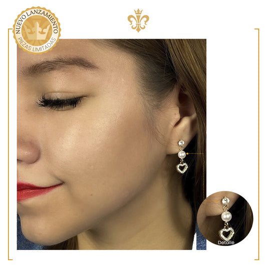 Aretes Acero Inoxidable Dama Broquel Cristales Corazón Perla