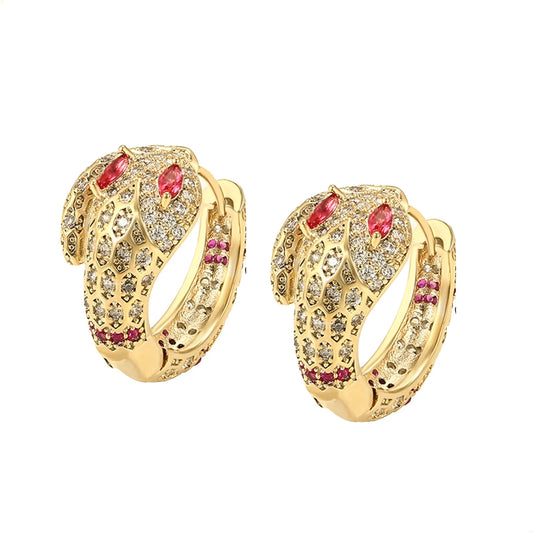 Aretes Arracadas De Serpiente con Finos Cristales En Oro Laminado