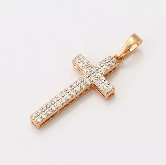 Collar con dije de cruz diamanta brillante para mujer en oro laminado