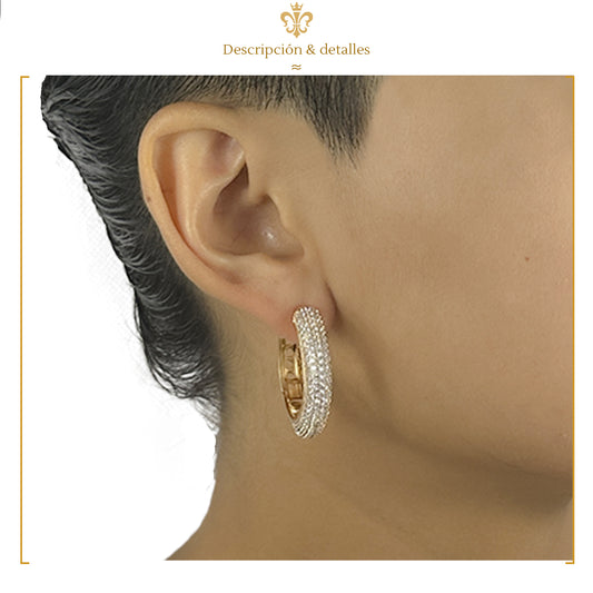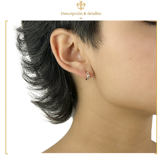 Aretes Arracadas Oro Lamina Huggies Mediano Grecas Swarovski