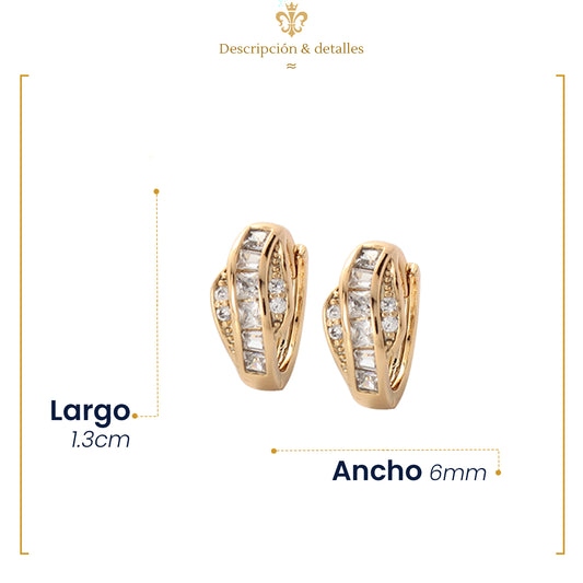 aretes arracadas medianas cuadradas diamantadas con cristales en oro laminado