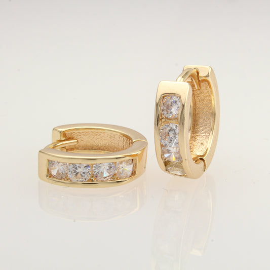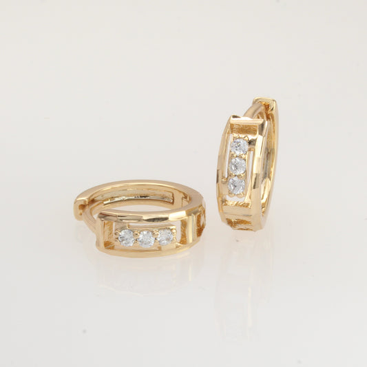 Aretes Arracaditas Huggies Pequeñas Para Mujer Con Cristales En Oro Laminado