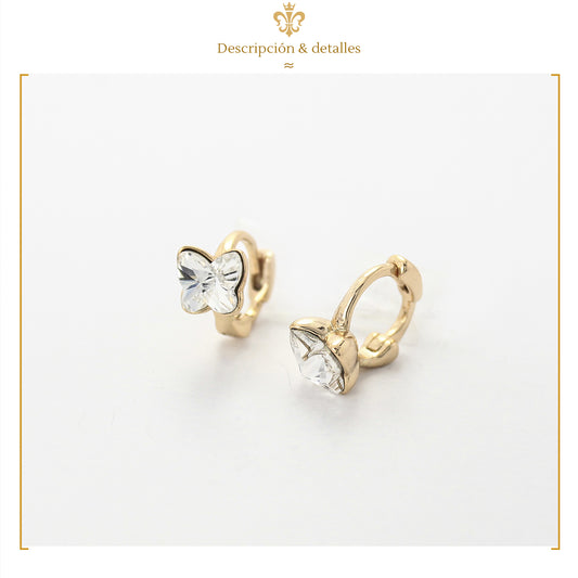 Aretes arracaditas De Oro Laminado 18k De Mariposas cristales para Niña