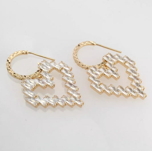 Aretes Arracaditas De Corazón Diamante Con Cristales Oro Laminado 18k