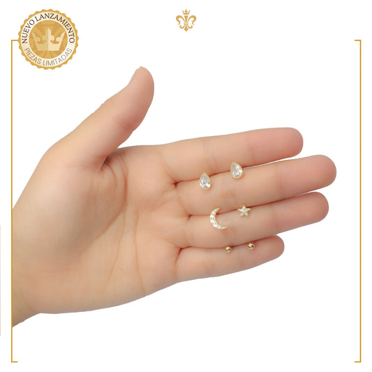 Aretes Broquel Estilo Arracada Medio Aro Triples En Acero Inoxidable Para Mujer