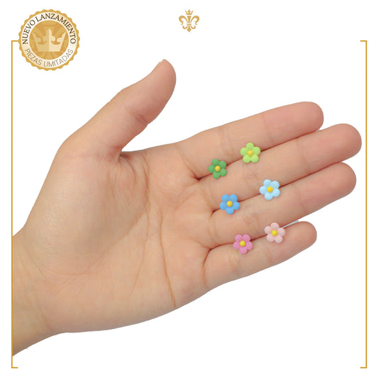 Aretes Broquel De Plata En Forma De Flor De Colores Para Dama Y Niña