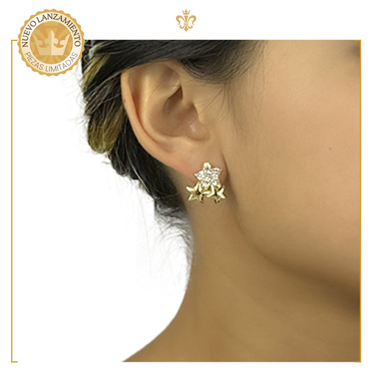 Aretes Broqueles De Estrellas Lisas Para Dama Con Cristales