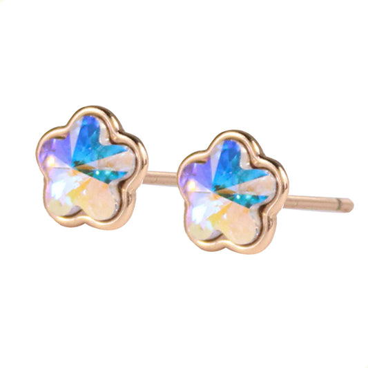 Aretes Broquel De florecitas Con Diamante De Colores En Oro Laminado