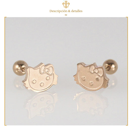 Aretes Broqueles con diseño de Gato en Oro laminado Rosa