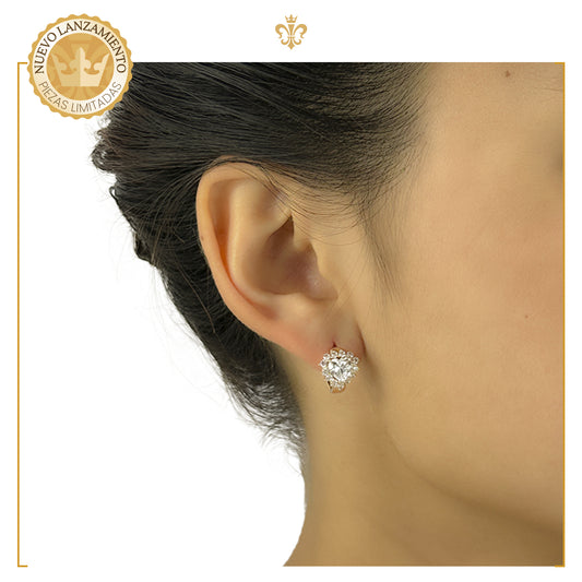Aretes Con Corazón Diamante En Oro Laminado Para Niña Y Dama
