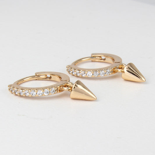 Aretes Dama Corazones Lisos Dorados Huggies Diamantados