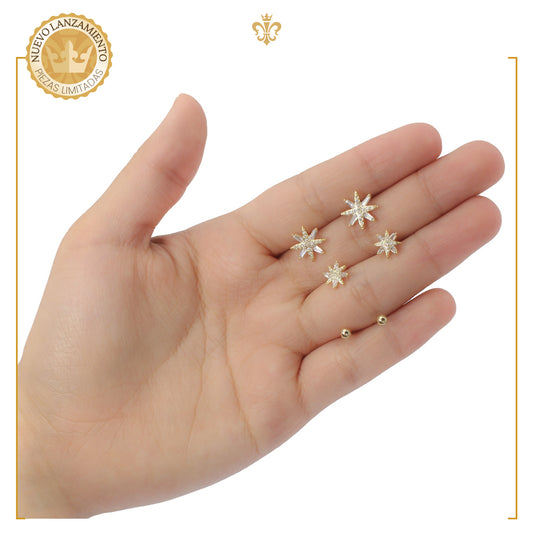 Aretes De Estrellas Broqueles Swarovski Oro Laminado 18k