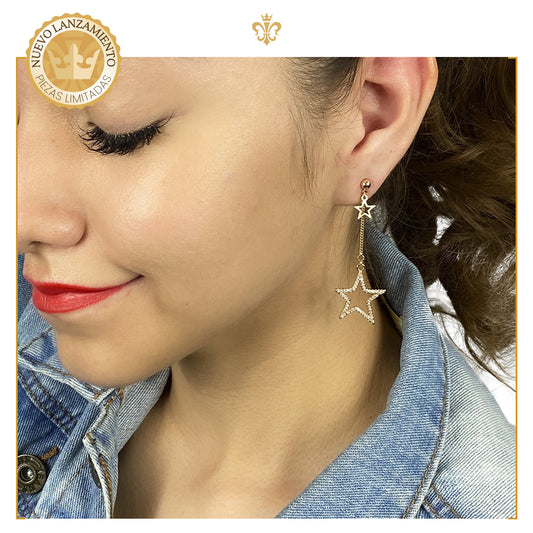 Aretes Broqueles Largos De Estrella Con Cristales En Oro Laminado