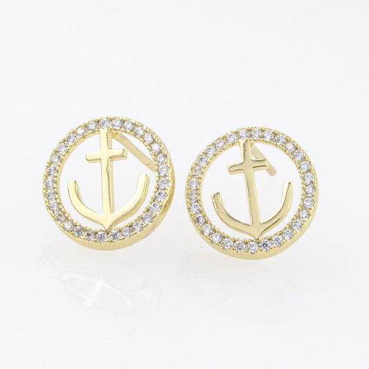 Aretes De Oro Laminado Estilo Ancla De Mar Con Finos Cristales