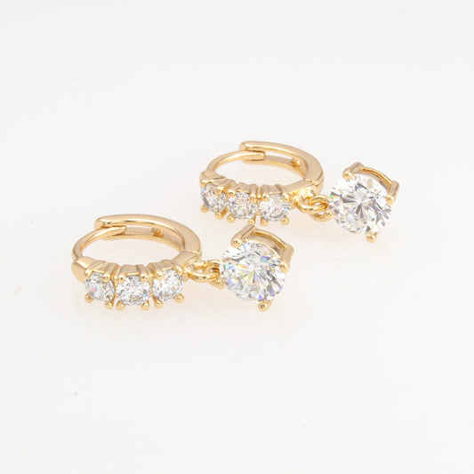 aretes huggies colgantes con cristales para mujer en oro laminado