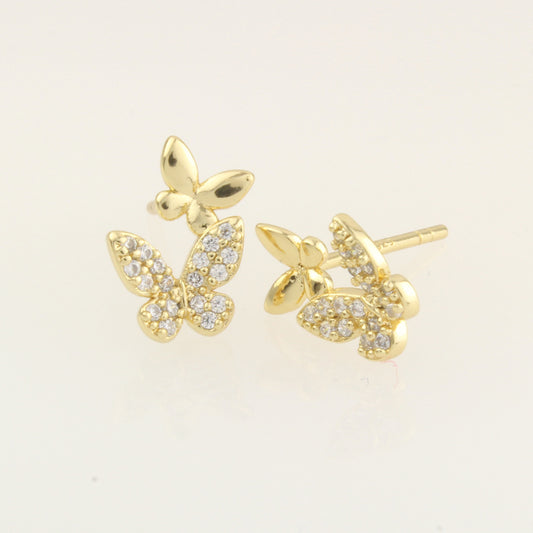 Aretes Huggies De Mariposa Con Cristales Para Mujer En Oro Laminado