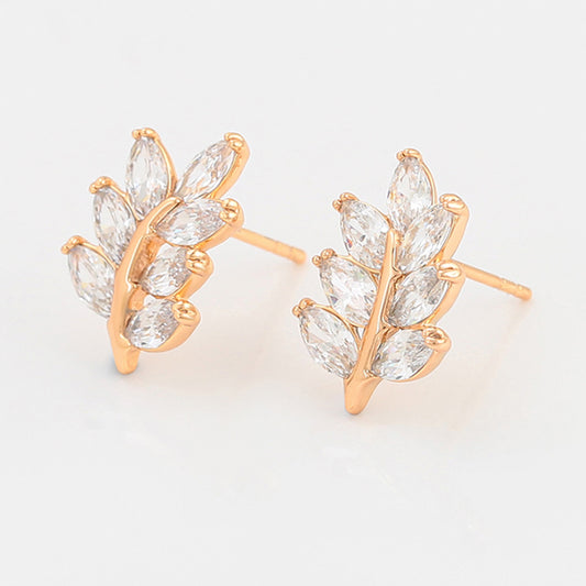 Aretes En Forma De Elecho Con Cristales En Oro Lamiando Para Mujer