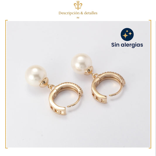 Aretes Huggies De Perlas Colgantes Laminado En Oro 18k