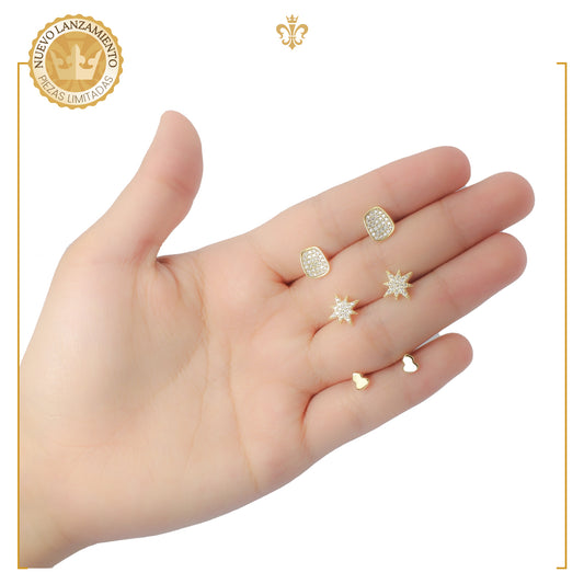 Aretes En Oro Laminado Con Cristales Corte Diamante Impero Jewelry