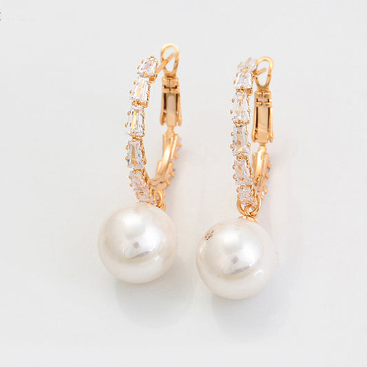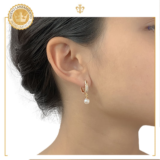 Aretes De Moda Largos De Perla Diamantados en oro laminado 14k