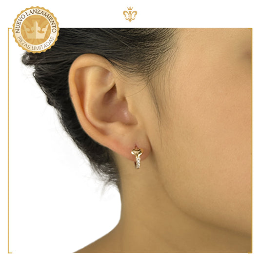 Aretes Huggies Corazón con Cristales en oro laminado 18k