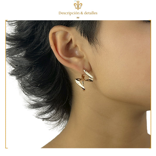 Aretes Huggies Abstractos diseño curvado en oro laminado 18k