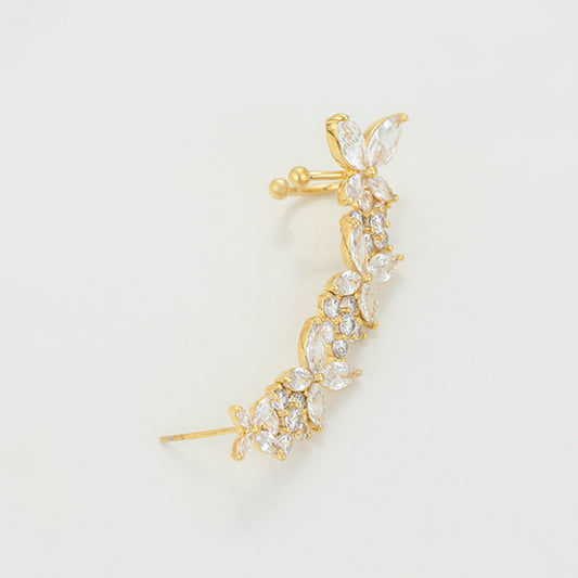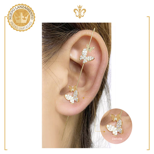 Aretes Estilo Cuff Piercing Con Cristales Tipo Mariposa En Oro Laminado