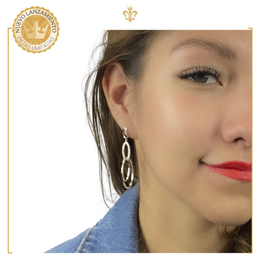 Aretes Pendientes Largos Ovalados Cristales Rodio Oro Blanco
