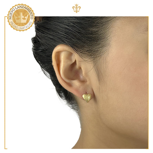 Aretes Huggies En Forma Corazón Satinados Oro Laminado 14k