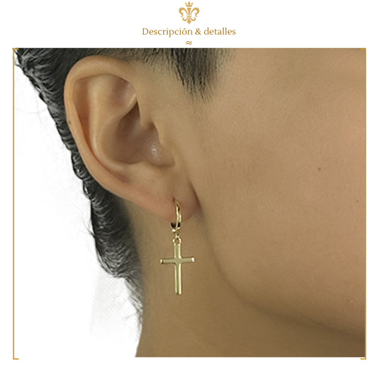aretes pendientes colgantes de cruz lisos en oro laminado estilo unisex