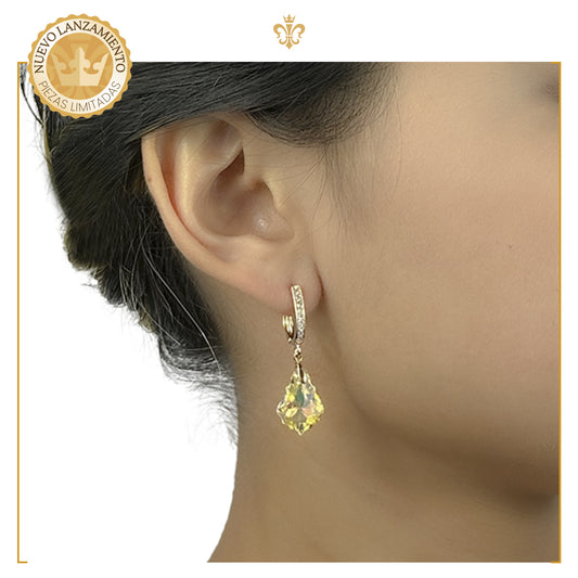 Aretes Largos Con Cristal Tipo Swarovski En Oro Laminado 18k