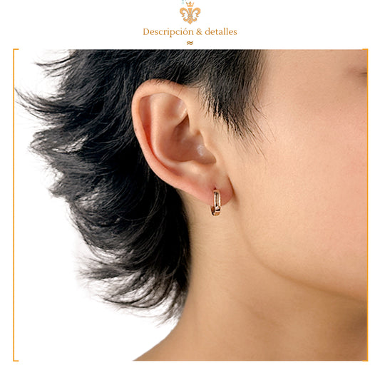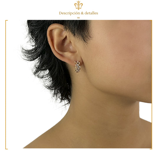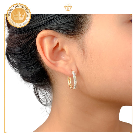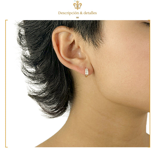 Aretes Huggies Rectangulares de Lujo con Cristales en oro laminado 18k