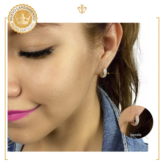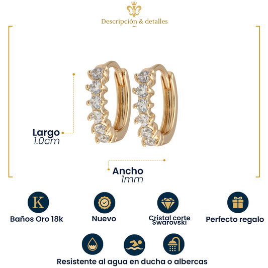 Aretes Huggies Dorados de lujo con cristales en oro laminado 18k