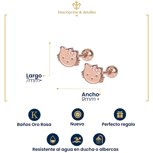 Aretes pequeños gato Oro Laminado rosa broqueles