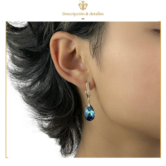 aretes largos cristales con diseño de gota en oro laminado 18k