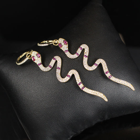 Aretes Largos Colgante Huggies De Serpiente Con Finos Cristales En Oro Laminado 14k