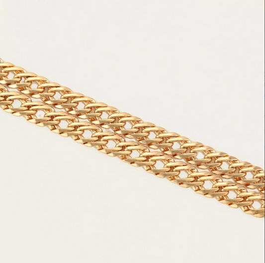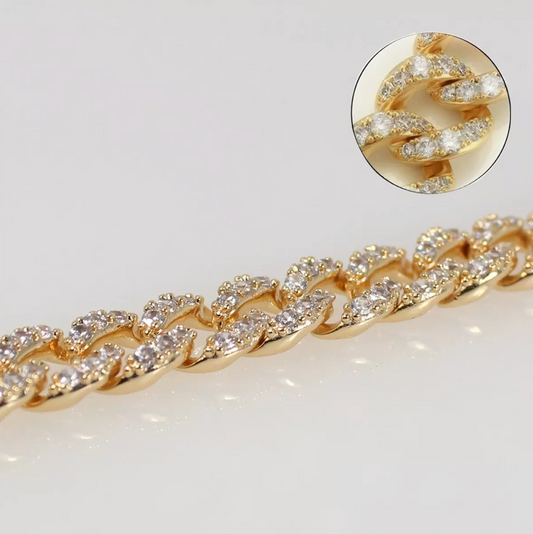 Cadena Barbada Cubana Diamantada Con Finos Cristales En Oro Laminada 18k