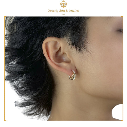 Arracaditas Doradas Para Niña Y Mujer Con Cristales Pequeños En Oro Laminado