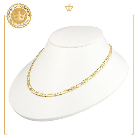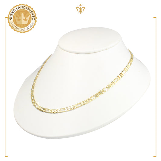 Cadena collar tejido figaro 4mm estilo unisex en oro laminado 24k