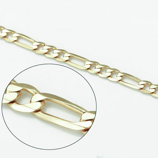 Cadena collar tejido figaro 4mm estilo unisex en oro laminado 14k