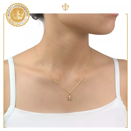 Cadena eslabones con dije diseño de tulipan rosa oro laminado